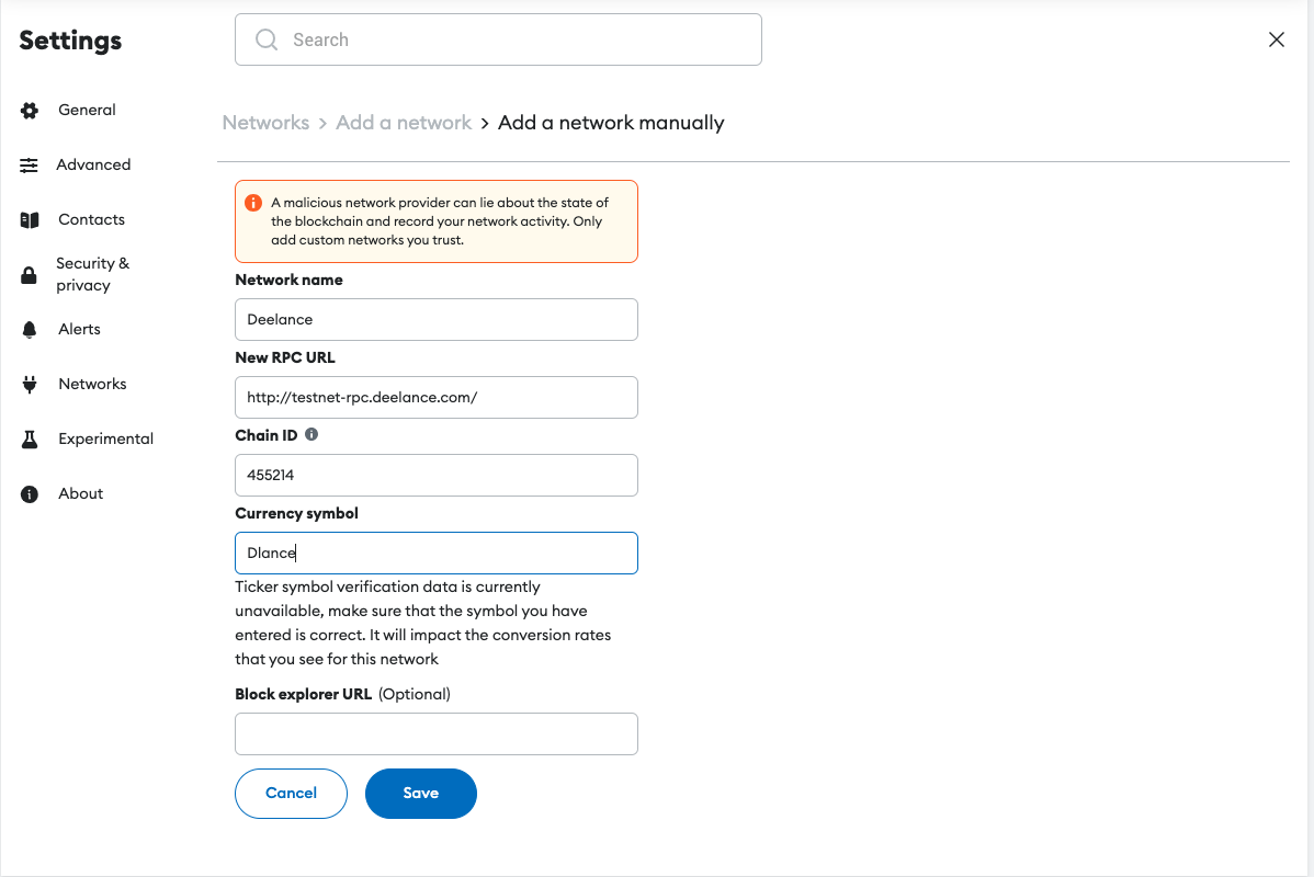 Add DeeLance to Metamask