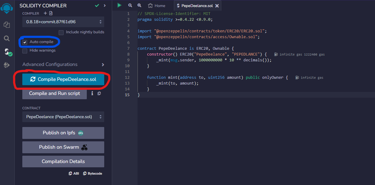 * Copy the following code and insert it into `PepeDeelance.sol`.